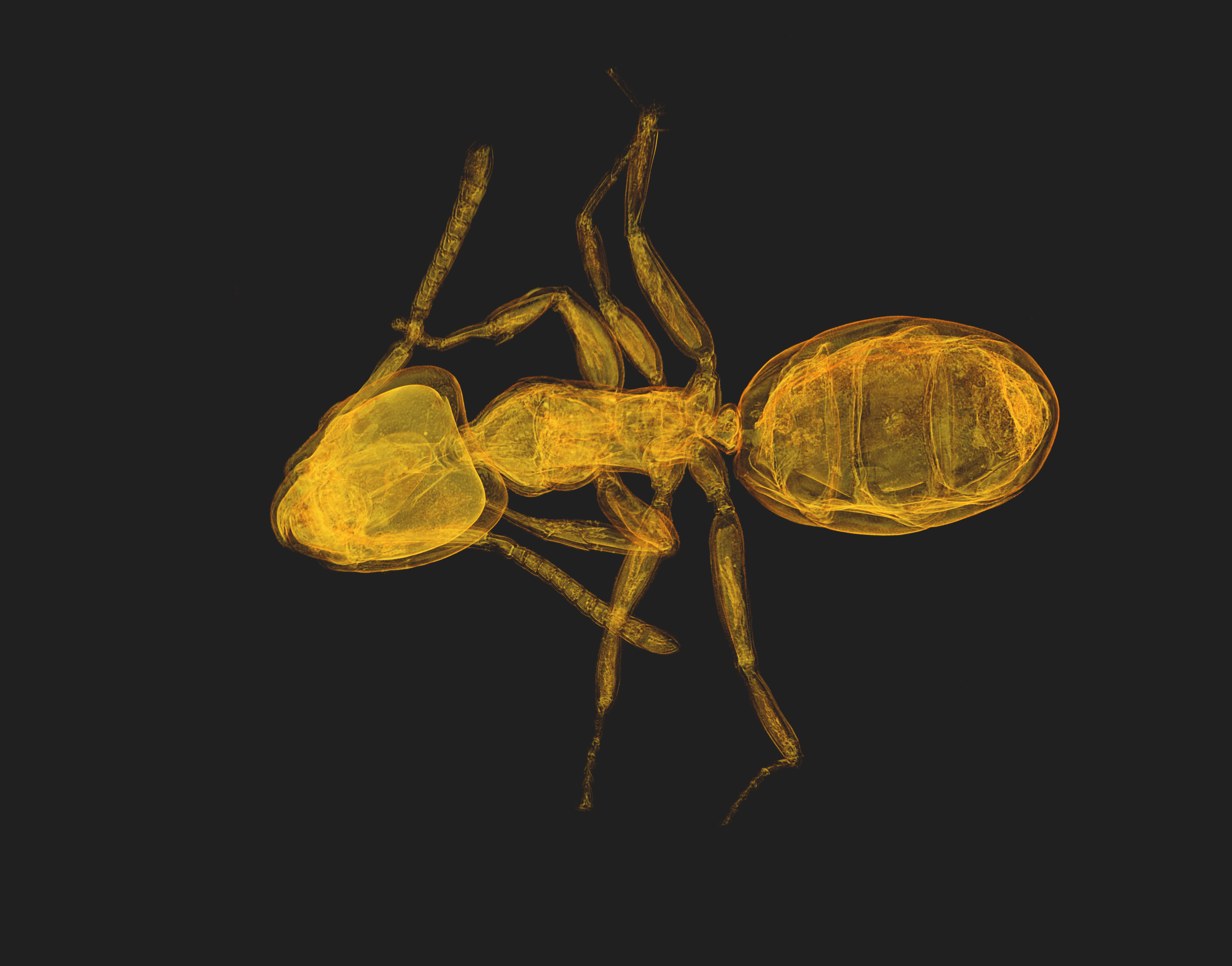 Using micro-CT we can image ancient creatures trapped in amber and reveal their three dimensional structure. In this image both the external and internal structure are revealed. This work was done in collaboration with researchers at the Royal Saskatchewan Museum.