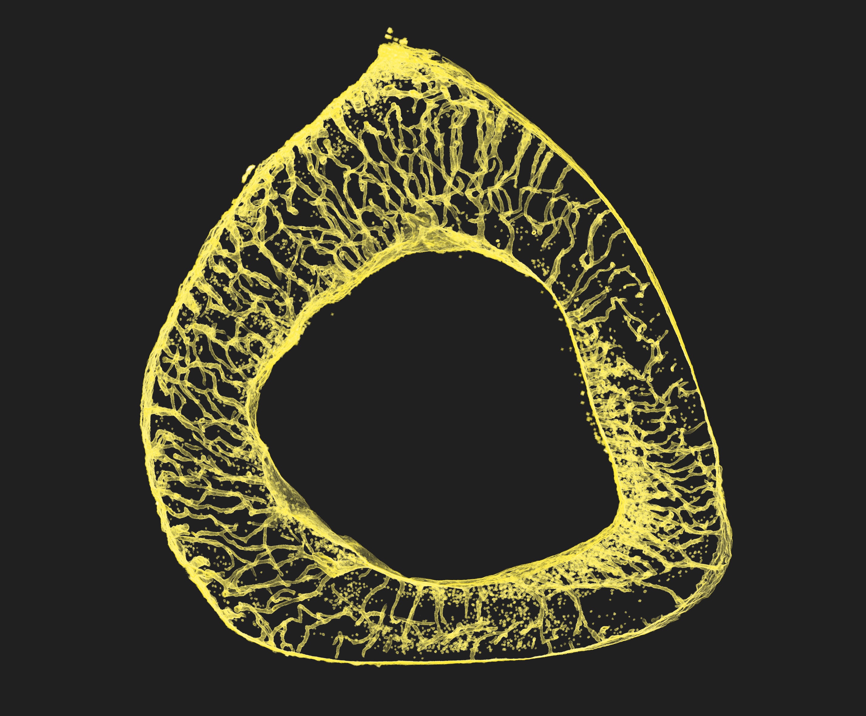 This image shows a render of the canal network and some larger osteocyte lacunae in a rat tibia. It was taken using a SkyScan desktop micro-CT. Most of my research has focused on using micro-CT to image cortical bone.